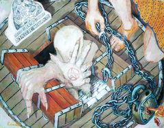 The doctor discovers the cure for malaria this painting is called eureka and this happens to all of us when we believe the gospel and discover God within EUREKA!